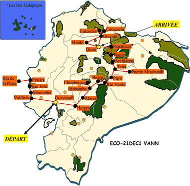 Départ de Guayaquil et arrivée en France. |